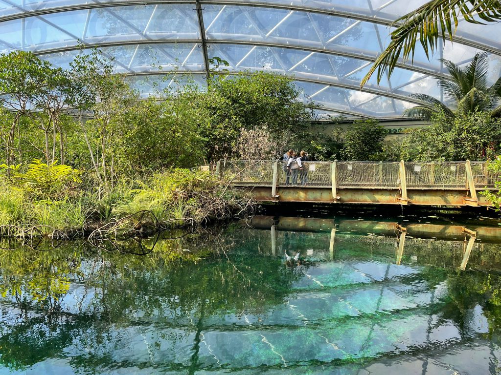 Zo kun je door de woestijn wandelen in de bush, diep de zee in duiken in de ocean of op avontuur in de jungle in Burgers’ bush. Burgers’ bush is de eerste hal die het park heeft aangelegd. In 1988 is de bush geopend. Als je oude foto’s terug ziet, zie je dat de beplanting toen nog heel laag was, waardoor de hal redelijk kaal oogde. Nu is de hal echt helemaal overdekt met tropische planten. Leuk om te zien dat zo’n ecosysteem zich dus in de loop der jaren blijft ontwikkelen!